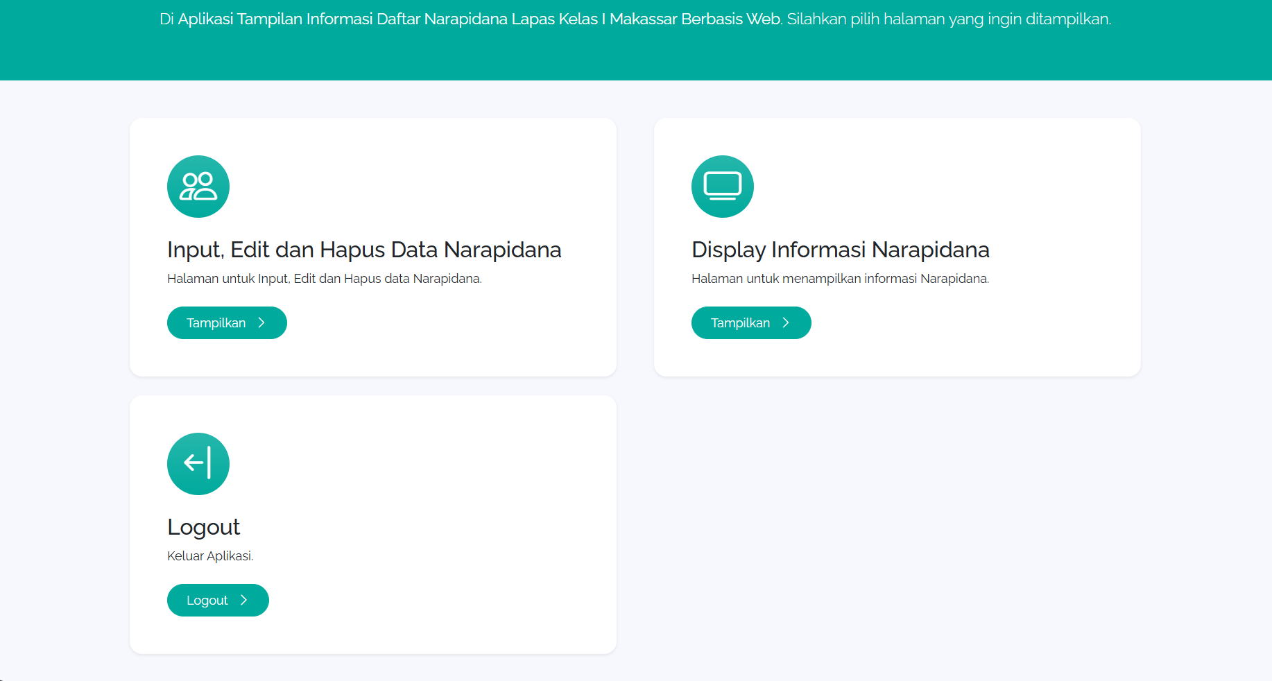 Web ini digunakan untuk menampilkan status narapidana yang dapat diupdate oleh operator dan menampilkan data untuk para narapidana melihat status mereka.